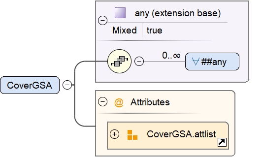 Element CoverGSA Namespace No namespace Diagram Type extension of Complex Type any Type hierarchy Complex Type any Properties content: complex Model ANY element from ANY namespace Attributes QName Type Default Use Attribute CoverGSA.attlist / @audience optional Attribute CoverGSA.attlist / @base optional Attribute CoverGSA.attlist / @class - topic/p optional Attribute CoverGSA.attlist / @conaction restriction of xs:token optional Attribute CoverGSA.attlist / @conkeyref optional Attribute CoverGSA.attlist / @conref optional Attribute CoverGSA.attlist / @conrefend optional Attribute CoverGSA.attlist / @dir restriction of xs:token optional Attribute CoverGSA.attlist / @id optional Attribute CoverGSA.attlist / @importance restriction of xs:token optional Attribute CoverGSA.attlist / @otherprops optional Attribute CoverGSA.attlist / @outputclass optional Attribute CoverGSA.attlist / @platform optional Attribute CoverGSA.attlist / @product optional Attribute CoverGSA.attlist / @props optional Attribute CoverGSA.attlist / @rev optional Attribute CoverGSA.attlist / @status restriction of xs:token optional Attribute CoverGSA.attlist / @translate restriction of xs:token optional Attribute @xml:lang optional Attribute CoverGSA.attlist / @xtrc optional Attribute CoverGSA.attlist / @xtrf optional Source <xs:element name="CoverGSA"> <xs:complexType> <xs:complexContent> <xs:extension base="any"> <xs:attributeGroup ref="CoverGSA.attlist"/> </xs:extension> </xs:complexContent> </xs:complexType> </xs:element> Parent topic: Element